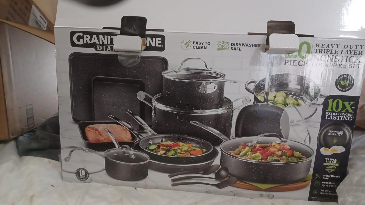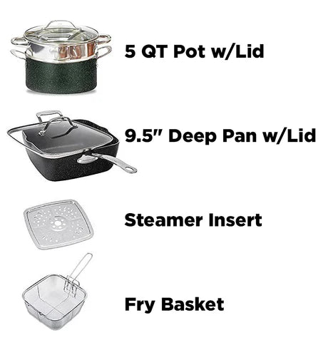 Our legendary non-stick granite-coated 20-piece set has everything you’ll need for cooking healthy meals in your kitchen.